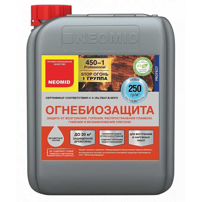 Огнебиозащита NEOMID 450-1 (1-2 группа) 10 кг, тонированный (канистра) Показать информацию