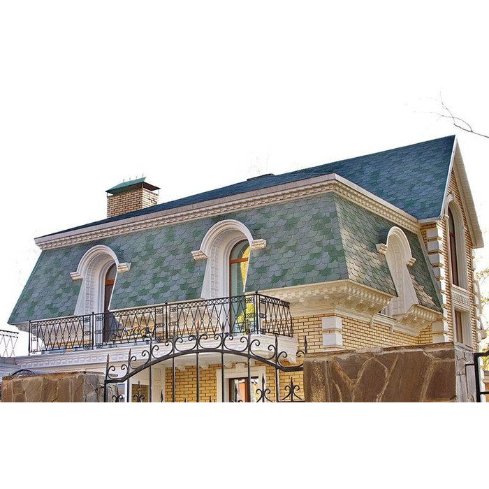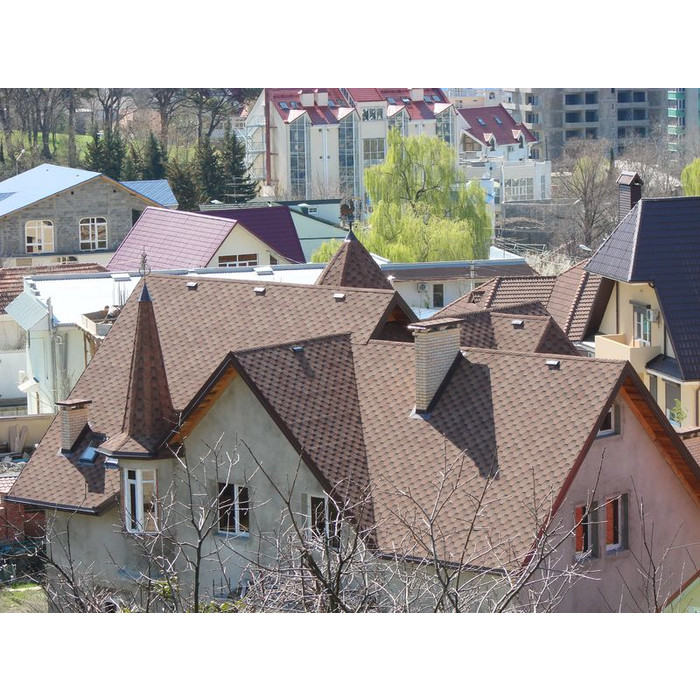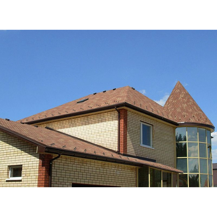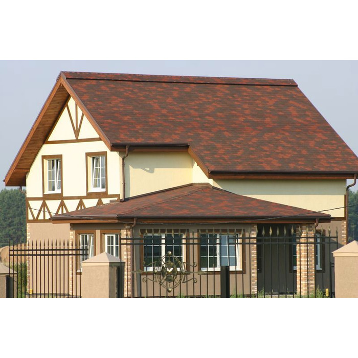 Гибкая черепица устойчива к температурным изменениям, механическим повреждениям. Гибкая черепица подходит для крыш различных форм и размеров. Она идеально подходит для домов с нестандартными формами крыши, так как гибкая черепица легко гнется и принимает нужную форму. Также она подходит для многоугольных и купольных крыш.