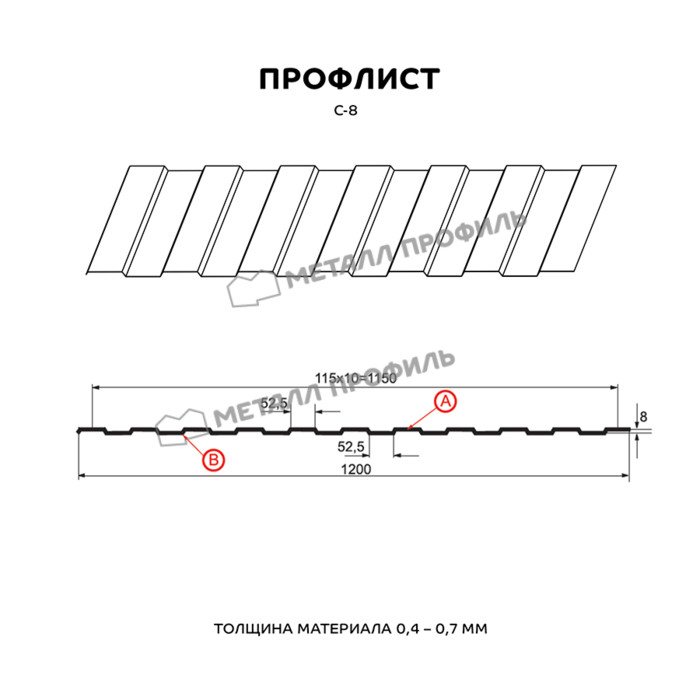 Профлист Металл Профиль С-8 0,45 Полиэстер RAL 9003 Белый | A