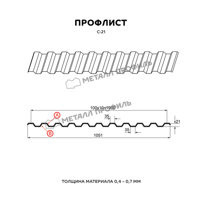 Профлист Металл-Профиль С-21 Полиэстер 0.5 мм RAL 9003 Белый
