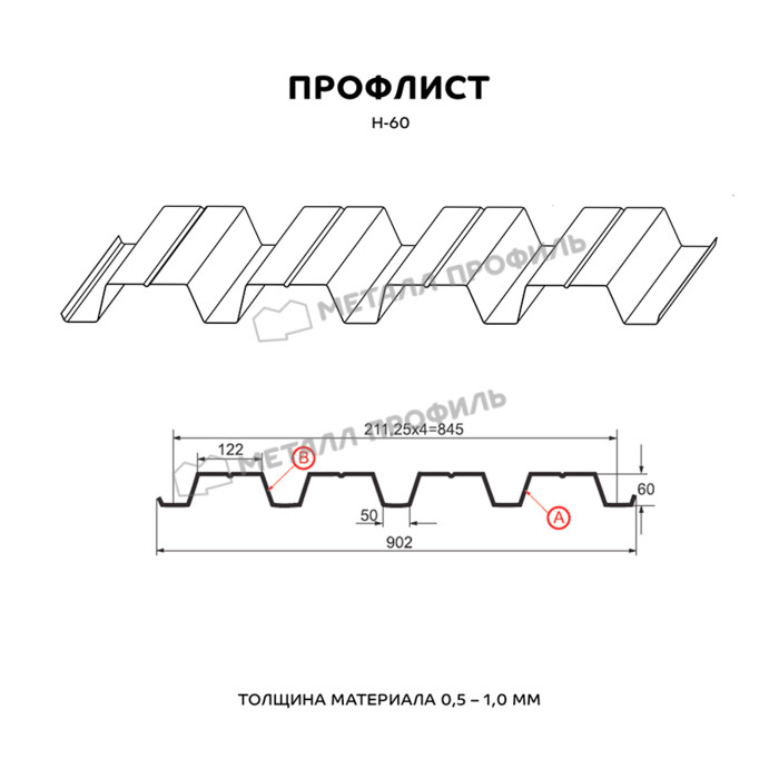 Профлист Металл Профиль Н-60 0,5 NormanMP RAL 1015 Светлая слоновая кость