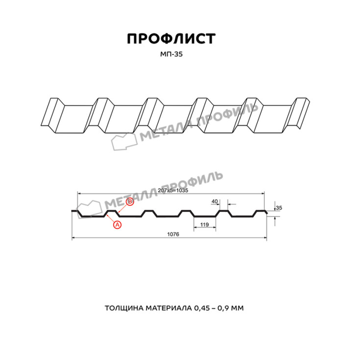 Профлист Металл-Профиль МП-35 Полиэстер 0.5 мм RAL 1015 Светлая слоновая кость