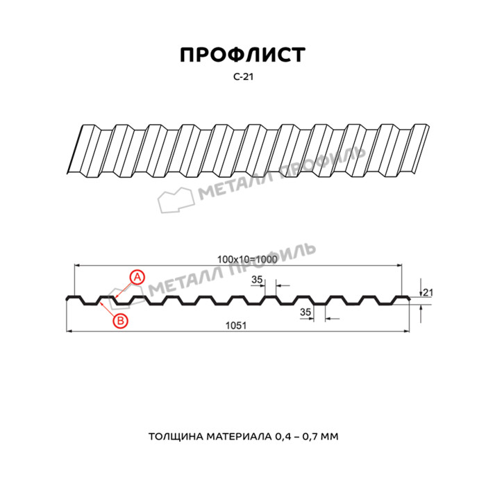 Профлист Металл-Профиль С-21 PURMAN® 0.5 мм RAL 3011 Коричнево-красный