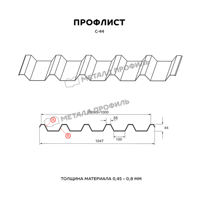 Профлист Металл-Профиль С-44 PURMAN® 0.5 мм RAL 3011 Коричнево-красный